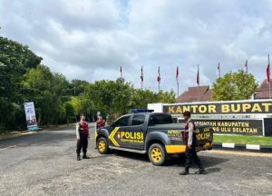 Anggota Polsek Buay Pemaca melaksanakan giat pengaturan lalu lintas di Jalan Pemkab Desa Sumber Raya, Kecamatan Buay Pemaca, Kabupaten OKU Selatan. Kegiatan ini dilakukan setelah terjadinya insiden sebuah kendaraan yang terguling di badan jalan sehingga menghambat arus lalu lintas.