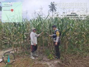 Buay Pemaca – Dalam rangka mendukung Program Pemerintah di bidang Ketahanan Pangan guna mewujudkan Swasembada Pangan, Bhabinkamtibmas Polsek Buay Pemaca BRIPTU Aby Rahmat melaksanakan kegiatan pengecekan lahan tanaman jagung di wilayah desa binaannya.